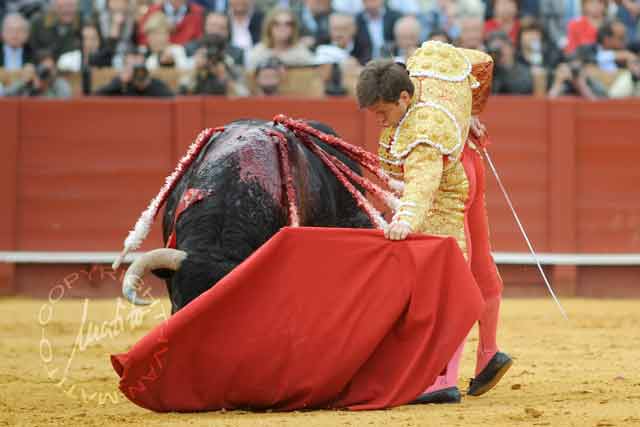 Manuel Viera.- Lo hecho por Julián López ‘El Juli’ esta tarde en la Maestranza ha sido una joya. Una obra de una belleza y encanto singular. Dentro de la pureza de estilo la faena al noble y buen toro segundo de Garcigrande poseyó una frescura fascinante. Momentos estelares con la diestra y magistral la versión del natural. El madrileño ha vuelto a mostrar su perfil de consumado maestro con un toreo poderoso, técnicamente perfecto, ligado, refinado, auténtico y de contagiosa emoción. |