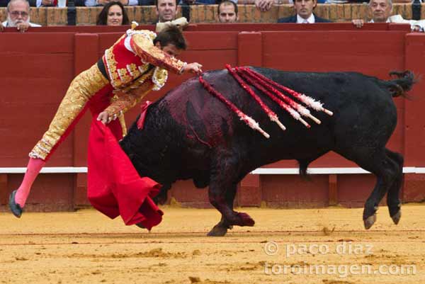 La tarde fue de, y para, el torero de Madrid. Porque Enrique Ponce con ambos toros nobles y sosos se limitó a poner en práctica su sapiencia y depurada técnica. Con el primero, un toro de nula transmisión en la muleta, se esforzó con un toreo a media altura sin una pizca de emoción. Muletazos a derecha e izquierda perfectamente dibujados, aunque discontinuos, que no sirvieron para entonar una faena sin demasiado contenido que quedó, además, sin firmar con la espada. Con el noble y parado cuarto pareció impotente ante las cansinas embestidas del toro de Garcigrande. Como si no estuviera convencido de lo que hacía. Muy desajustado y con continuos enganchones no dejó a nadie satisfecho. Mató mal y se fue de Sevilla y de su feria cabizbajo y en silencio.