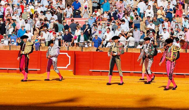 ESPADAS: –Morante de la Puebla (de fucsia y azabache), silencio y dos orejas.