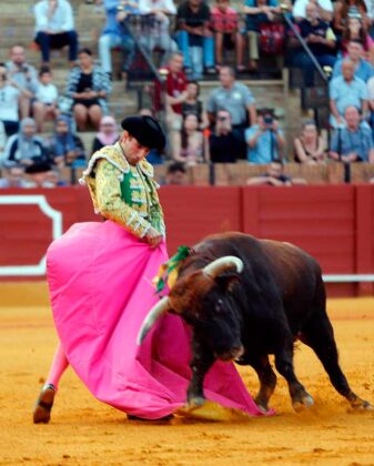 Calerito sabía de la oportunidad de la noche y no la quiso desaprovechar. Además, cuando el esfuerzo da consistencia al concepto ha de llegar el triunfo. Esfuerzo y concepto, singular combinación que dio pie a expresar un toreo ciertamente interesante. Fue lo mejor visto en la Maestranza durante otra calurosa noche sevillana. Un toreo muy útil para contemplar y sobre todo para gozar. Un toreo largo en el trazo y breve en las series, despacio, de mano baja, hilvanado, de notables cambios de manos y rematados con extraordinarios pases de pecho. Una faena con ambas manos que fue ganando intensidad según trascurría la lidia, aunque le sobró finales.
