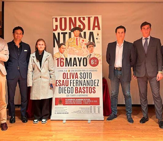 La plaza de toros sevillana de Constantina será el escenario de la alternativa del sevillano Diego Bastos, ante sus paisanos. El empresario Pedro Pérez 'Chicote' ha presentado la corrida del sábado 16 de mayo, que complementan los diestros cameros Oliva Soto y Esaú Fernández. Los toros serán del hierro de Lora Sangrán.