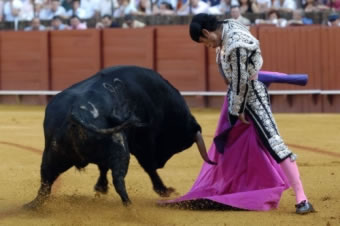 Manuel Viera.- Sí, hay que estar como se debe de estar. Y el que se inicia en esto y pisa el ruedo de tan emblemática plaza de toros no le queda otro remedió que demostrar interesantes formas y emocionar a una gente deseosa de ver el triunfo de los que empiezan. Aunque la emoción, a falta de toro, la ponga en exclusiva el torero. Fue lo que hizo el debutante Pepe Moral, el más destacado de la calurosa tarde de toros en La Maestranza. El palaciego que, tras su sonado triunfo en Las Ventas de Madrid, ocupó el puesto bacante en este festejo, no desaprovechó su oportunidad pese a la escasa calidad de sus novillos. Moral supo aprovechar las primeras embestidas del rajado segundo con su templado capote. Con perfecta técnica fijó al utrero para después en los medios lancear con gusto y rematar lo hecho con media verónica de lujo. Fue el prólogo a un interesante trasteo logrando gracias a un estilo bien definido de toreo hondo, ceñido y cargado de emotividad. En este caso la faena de Pepe Moral tuvo momentos de significativo toreo a derechas. Fue la precisión del trazo con la diestra lo mejor de unas formas que de inmediato establecieron el dialogo con los tendidos a pesar de la falta de ligazón. Faena con intermitencia en los intentos con la zurda, aunque firme en su demostración del valor. La notable estocada rubricó lo hecho y bien valió la triunfal vuelta al ruedo. Tampoco tuvo fisuras el trasteo al flojo quinto. Moral se fue a portagayola, quitó por chicuelinas y le plantó cara con ambas manos sin alcanzar alta nota. Tuvo que ser en un arrimón de escalofrío cuando el sevillano de Los Palacios hizo vibrar al público con su firmeza y valor. Otra perfecta estocada justificó esta otra vuelta al anillo. La tarde tuvo un interés relativo debido a los mansos, complicados y flojos utreros de Villamarta. Sólo el más noble, el primero, salva a una novillada muy escasa de casta. De todas formas, el también debutante Ismael Cuevas supo encandilar a sus gentes con el virtuosismo del trazo al natural. Fueron sólo dos y un perfecto pase de pecho trazados al manso tercero, pero suficientes para demostrar la calidad de su toreo con la zurda. La faena no tuvo intensidad aunque sí dejó constancia, también con la derecha, de un estilo muy clásico y de atractivo interés. Al sexto, rajado y buscando siempre el amparo de la tablas, le pudo robar algún que otro pase de buen trazo entre otros muchos enganchados. Cuevas, valiente y fácil también con las banderillas, mató al segundo de perfecto espadazo, y le cayó bajo el acero al finiquitar al sexto. José Manuel Sandín, sobrado en ocasiones, les faltó en otras más decisión y sentido del temple. Sus buenas maneras topan a menudo con su demasiada obsesión por el detalle. Al primero, el mejor de los utreros, lo toreó demasiado banal y sin emoción y lo mató muy mal. Al cuarto, soso y defendiéndose, le costó un mundo sacarle un muletazo sin ser enganchado. Con media estocada en buen sitio firmó una actuación mediocre y trivial.