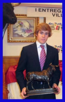 El novillero de Espartinas recogió el pasado jueves en la localidad madrileña de Algete el trofeo que le acredita como uno de los triunfadores del I Certamen de novilleros de Algete. El acto, organizado por el Ayuntamiento de Algete, contó con la presencia de numerosas personalidades, entre ellas, la alcaldesa de Algete, Inmaculada Juárez; el matador de toros Juan Mora; o el director de Asuntos Taurinos de la Comunidad de Madrid, José Pedro Gómez Ballesteros.