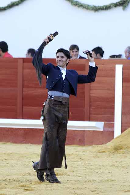 Al sexto, mansito pero con fijeza y buen tranco, ejecutó las distintas suertes muy despacio, aunque se mostró más espectacular en la necesaria puesta en escena, Ventura -un auténtico centauro- realizó un toreo vibrante, valiente, y no exento de verdad. Corrió a al toro de Soto de la Fuente a dos pistas con ‘Loro’, un caballo joven y nuevo en las plazas, para clavar banderillas a una mano. Con ‘Morante’, toreando muy despacio, se recreó en la suerte y se adornó con los característicos mordiscos del caballo al morrillo del toro. Gran conocedor de los terrenos, formó después un verdadero lío clavando rosas y banderillas cortas con ‘Ribatello’. Tras fulminante rejón paseó de nuevo los máximos trofeos.
