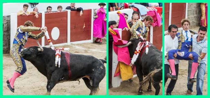 El diestro sevillano Manuel Escribano ha estado a punto de perder la vida tras la cogida sufrida ayer tarde en Sotillo de la Adrada (Ávila). El toro le enganchó por la pierna en el tercer par de banderillas y lo aplastó contra las tablas. Sin romper la piel, le produjo la rotura de la vena ilíaca y una hemorragia abdominal con pérdida de tres litros de sangre.