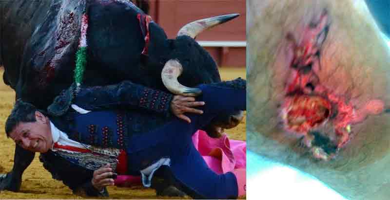 Nos lo encontramos estos días en Sanlúcar la Mayor, su pueblo, y nos cuenta de su viacrucis. En la siguiente novillada de la Maestranza (el mano a mano del día 3 de julio) se presenta Guerrero en la enfermería de la Maestranza para quitarse los puntos. Cuando se da cuenta se ve en el quirófano con anestesia y un hueco grande en la herida que se había cerrado en falso y tenía alguna derivación infectada, Desde entonces todo se complica. Ya no pueden suturar los doctores la llaga con puntos. Se queda abierta, como una fistula que debe cerrar de dentro afuera.