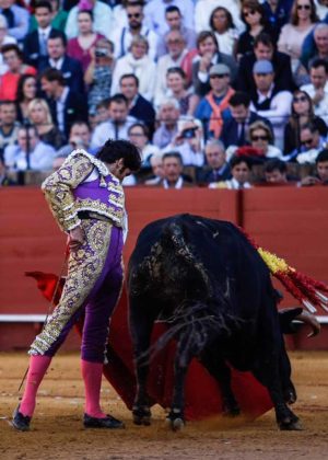 Apuesta ganada por el fervor popular de una tarde de toros en plena Feria de Abril. Circunstancia que determinó el triunfalista resultado final. En cualquier caso, es digno de admiración su caminar decidido hacia la puerta de chiqueros, hincarse de rodillas y aguantar la espera de la salida de su primer toro. Y lo hizo como siempre se ha hecho en Sevilla: sobre la segunda raya de picadores. Y es digno de agradecer su entrega y facilidad al clavar en un tercio de banderillas donde se la jugó con un gran par por los adentros. Después, su toreo fue modoso y superficial con un animal noble, aborregado y parado. Se afanó en la estocada y le agradecieron lo hecho con una ovación.