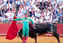 A diferencia de los del ciclo pasado que se mostraron colaboradores y nobles, los ‘villamartas’ de este año resultaron mansos y corretones. Con lo que ello supone para chavales sin más oficio que un montón de horas toreando de salón. De ahí que dieran al traste con las ilusiones de los seis jóvenes que a las nueve y media en punto de la noche del 11 de julio hicieron el paseíllo en La Maestranza y la abandonaron con las primeras horas del día siguiente. O lo que es lo mismo, ¡tras tres horas de festejo! Y eso que no hubo suerte de varas. Uceda Vargas y Solal Calmet ‘Solalito’ fueron los únicos con algo más de bagaje; por eso pudieron tocar pelo y pasearon un trofeo por el dorado albero maestrante.