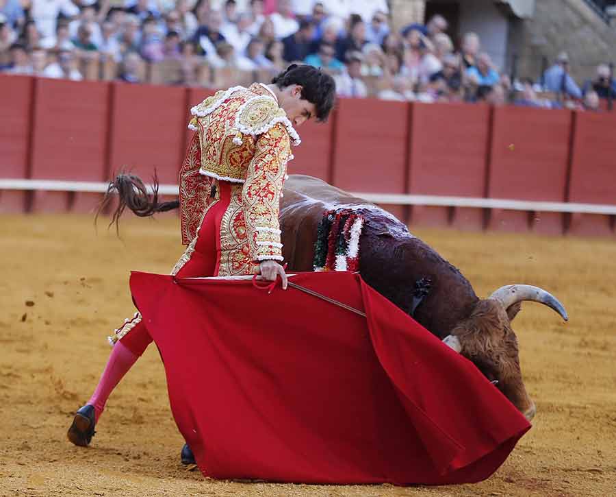 Cerraba cartel Antonio Grande. Pareció que le vino grande la tarde en la Maestranza… En el primero es cierto que no tuvo material, novillo con pocas fuerzas y sin transmisión, justificándose. Otra cosa fue el sexto, un novillo con posibilidades con el que no apostó, sin acople y con una falta de confianza que la potable condición del astado no demandaba, más allá de su mansedumbre. El silencio acompañó la faena.