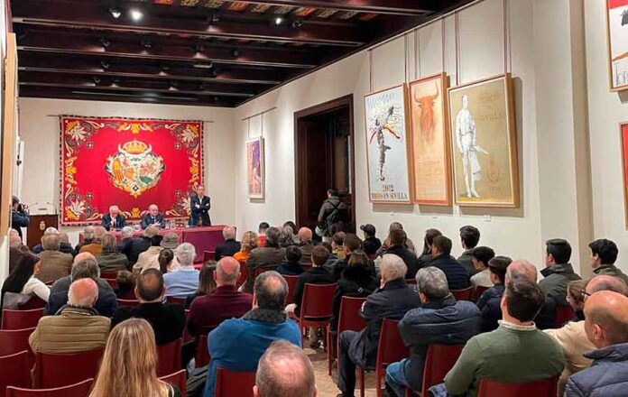 Vista del Salón de Carteles de la Real Maestranza durante la conferencia del ganadero Santiago Domecq.