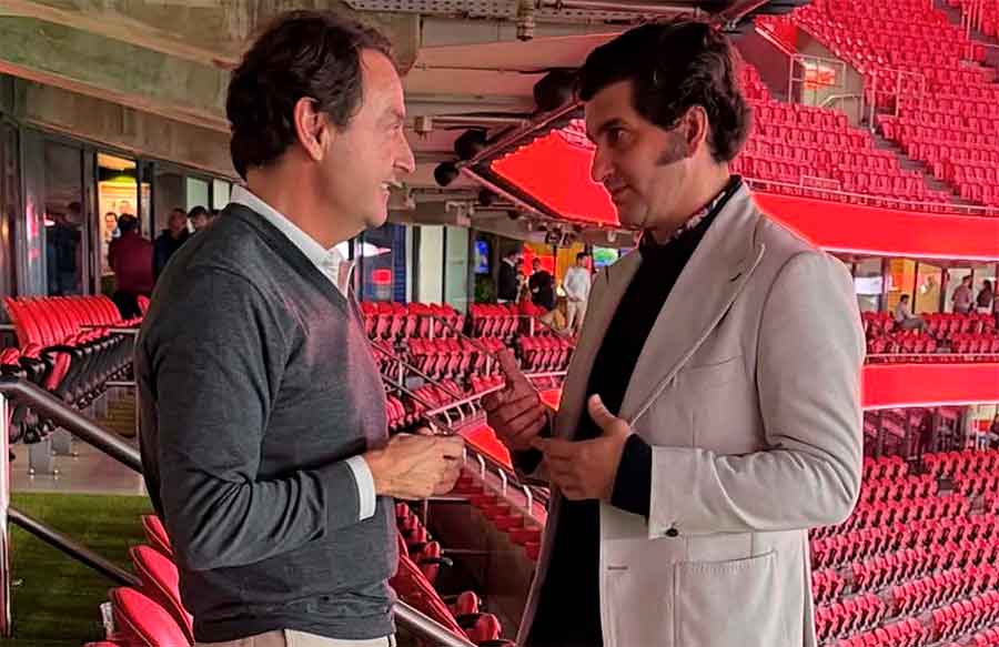 Morante conversa con el empresario de la plaza de toros de Madrid, quien ha comentado que "todo es posible en la temporada...".
