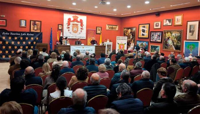 El ganadero sevillano Antonio Miura ha llenado el salón de las Bodegas Sani en Almendralejo (Badajoz). El acto ha estado organizado por la Peña Taurina ‘Luis Reina’. El representante de la legendaria divisa sevillana hizo un recorrido por la historia familiar de su ganadería y expuso la selección del toro actual.