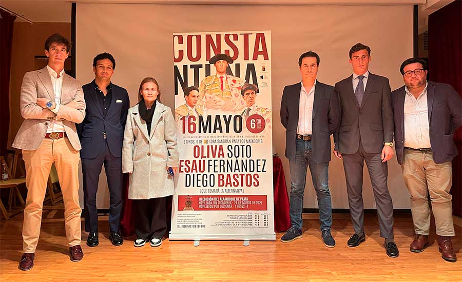 La plaza de toros sevillana de Constantina será el escenario de la alternativa del sevillano Diego Bastos, ante sus paisanos. El empresario Pedro Pérez ‘Chicote’ ha presentado la corrida del sábado 16 de mayo, que complementan los diestros cameros Oliva Soto y Esaú Fernández. Los toros serán del hierro de Lora Sangrán.