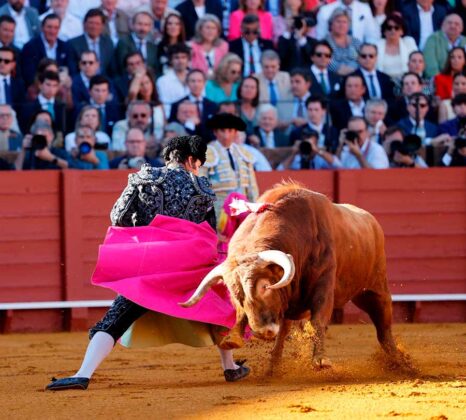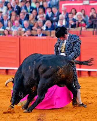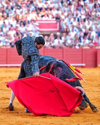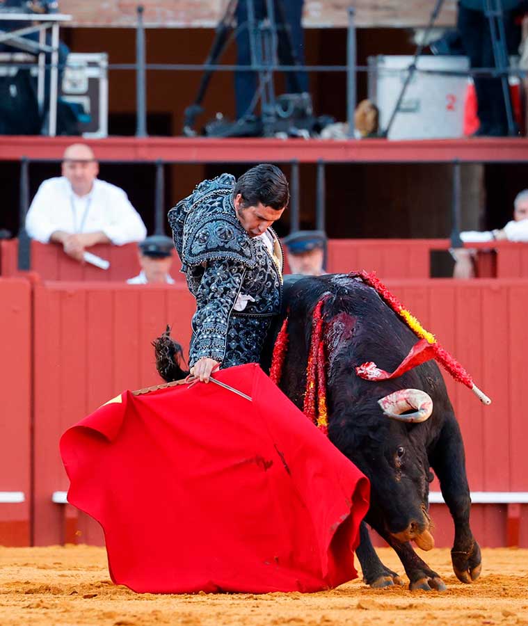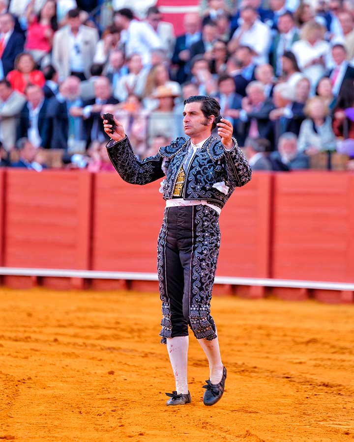 ESPADAS: –Morante de la Puebla (de negro y azabache), silencio y dos orejas.