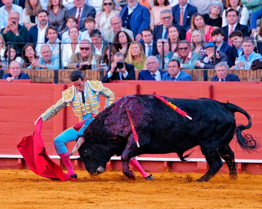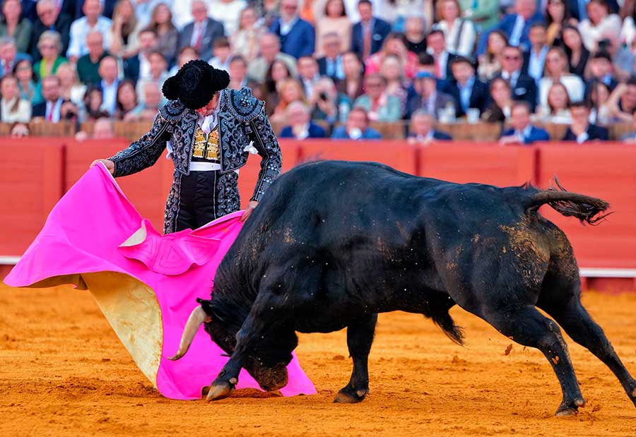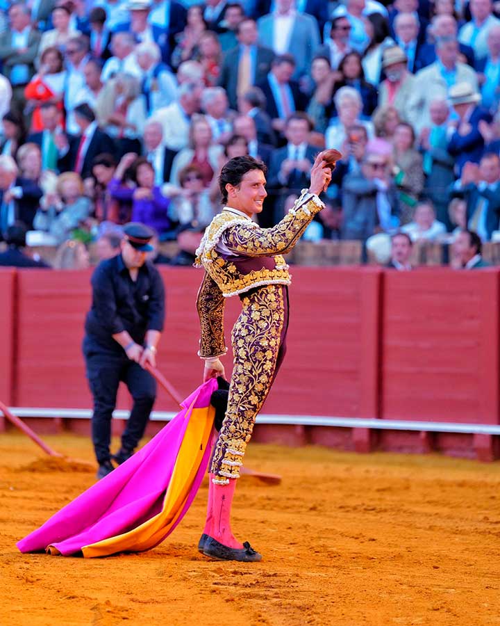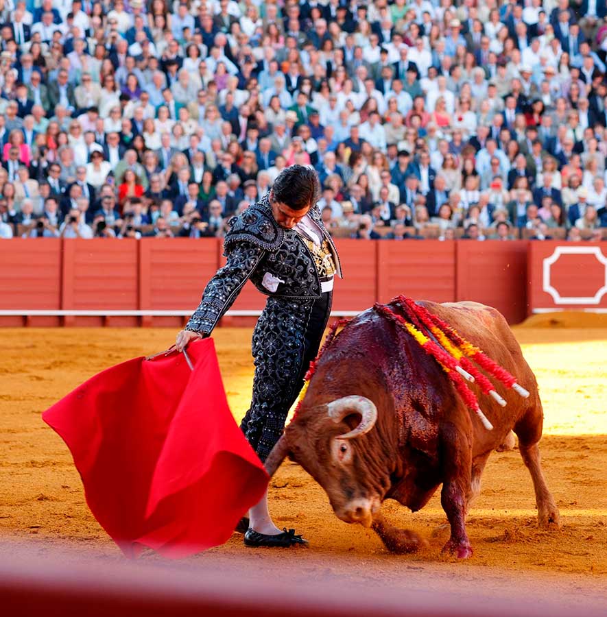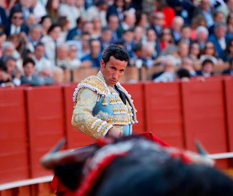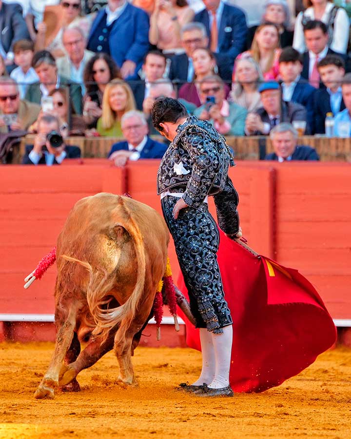 Como era de esperar, el público aterrizó de pleno en la Maestranza y todo fue emocionado y emocionante. La alegría contenida explosionó en una enorme ovación cuando el genio de La Puebla de Río apareció por el portón de cuadrillas. Y se repitió después, obligándolo a saludar desde el tercio. El diestro cigarrero provoca lipotimias emocionales, cortocircuitos sensibles. Los tendidos abarrotados de la Maestranza fueron una vorágine de exaltaciones que se transmitieron al territorio de albero donde se asienta y se expende la obra del artista. Fue entonces cuando uno aborda la conciencia de sentirse en la misma senda de influencia a la exaltación. Y todo fue posible.