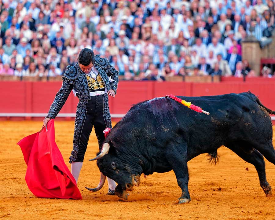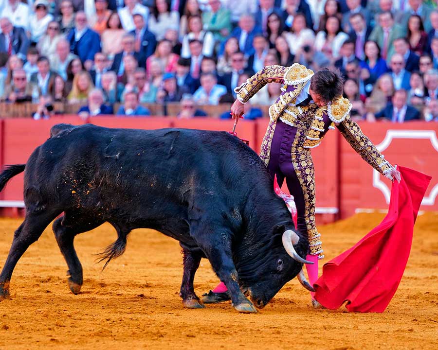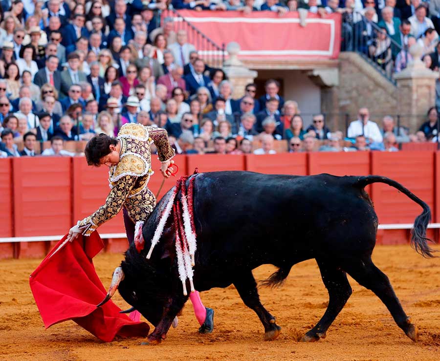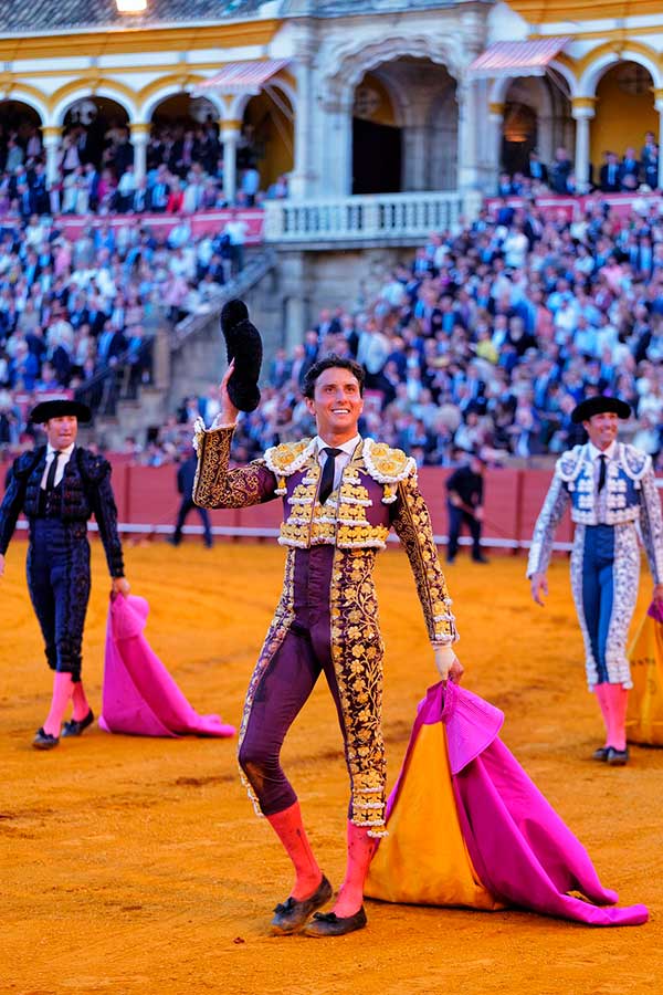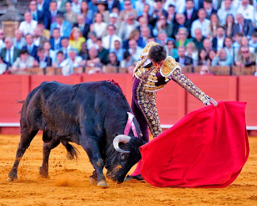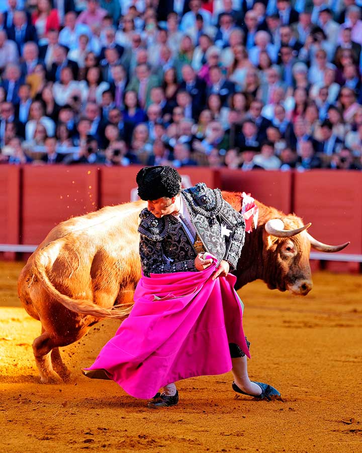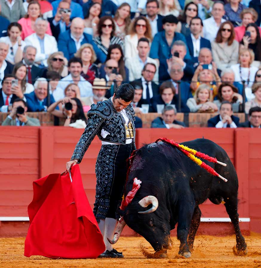 Como era de esperar, el público aterrizó de pleno en la Maestranza y todo fue emocionado y emocionante. La alegría contenida explosionó en una enorme ovación cuando el genio de La Puebla de Río apareció por el portón de cuadrillas. Y se repitió después, obligándolo a saludar desde el tercio. El diestro cigarrero provoca lipotimias emocionales, cortocircuitos sensibles. Los tendidos abarrotados de la Maestranza fueron una vorágine de exaltaciones que se transmitieron al territorio de albero donde se asienta y se expende la obra del artista. Fue entonces cuando uno aborda la conciencia de sentirse en la misma senda de influencia a la exaltación. Y todo fue posible.