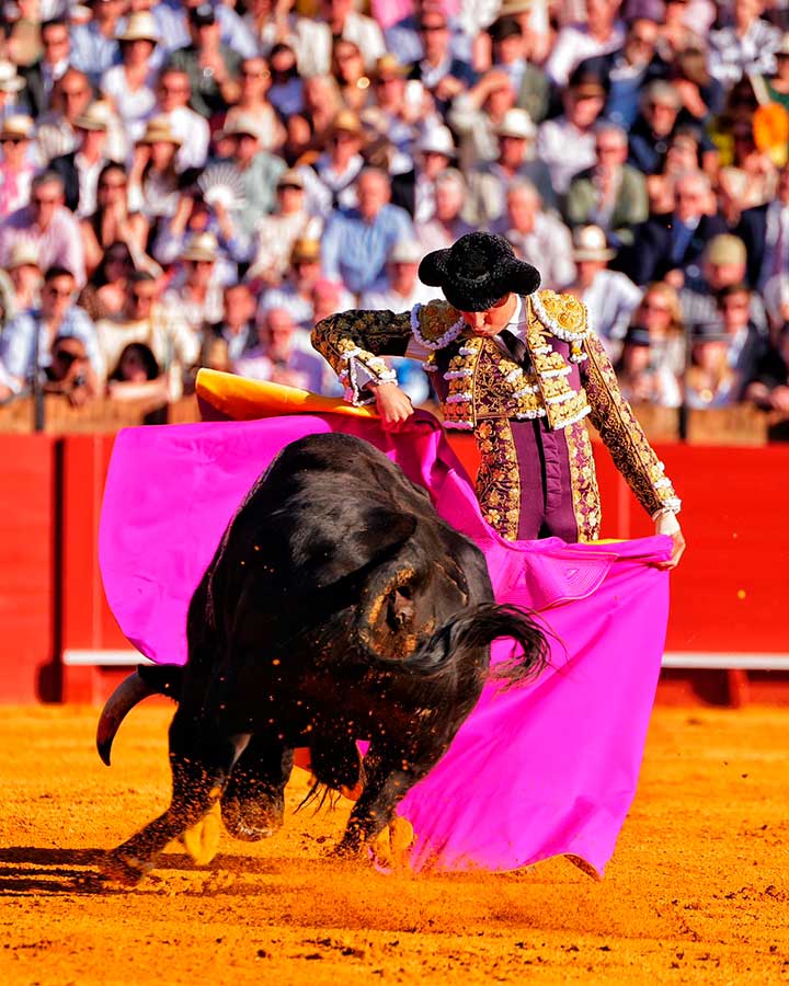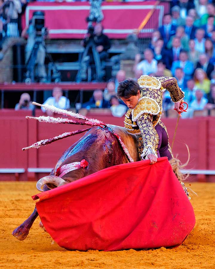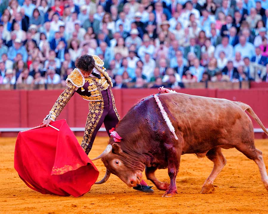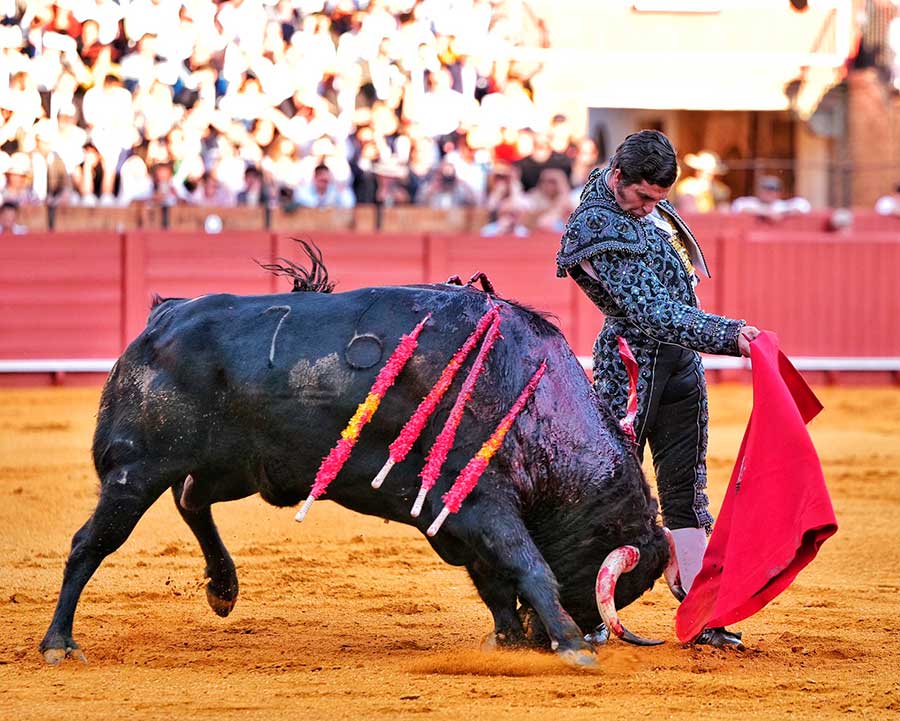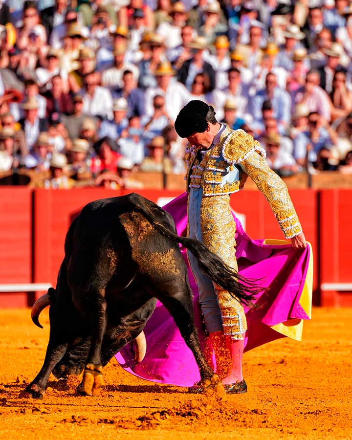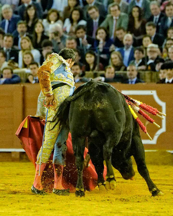 Como era de esperar, el público aterrizó de pleno en la Maestranza y todo fue emocionado y emocionante. La alegría contenida explosionó en una enorme ovación cuando el genio de La Puebla de Río apareció por el portón de cuadrillas. Y se repitió después, obligándolo a saludar desde el tercio. El diestro cigarrero provoca lipotimias emocionales, cortocircuitos sensibles. Los tendidos abarrotados de la Maestranza fueron una vorágine de exaltaciones que se transmitieron al territorio de albero donde se asienta y se expende la obra del artista. Fue entonces cuando uno aborda la conciencia de sentirse en la misma senda de influencia a la exaltación. Y todo fue posible.