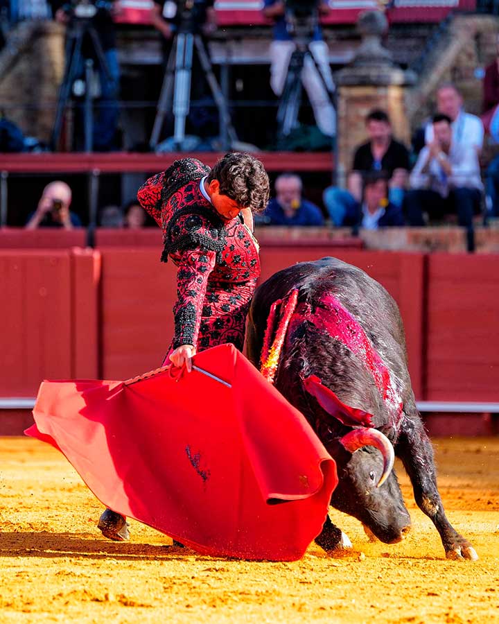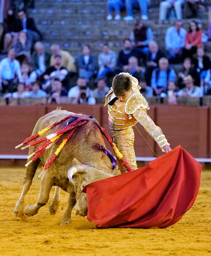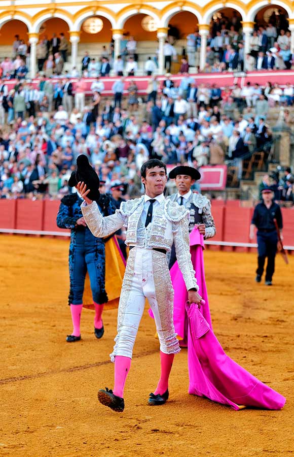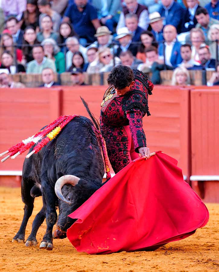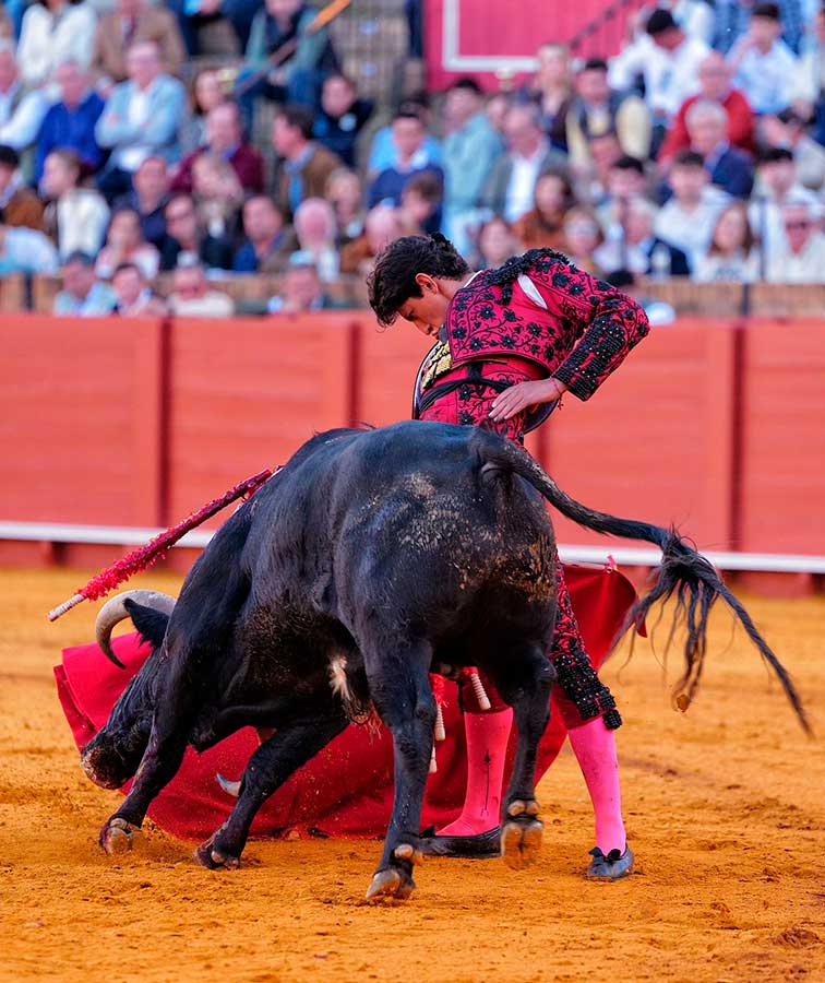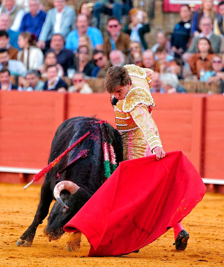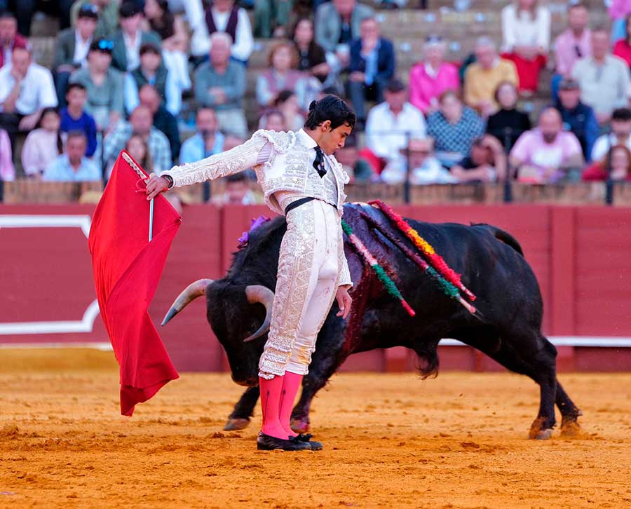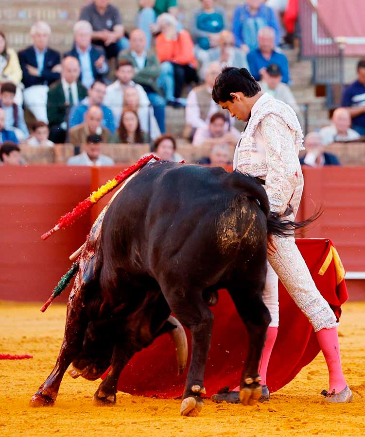 Emiliano Osornio, se presentaba en Sevilla y ninguno de sus novillos brindó a los sevillanos. Raro el mexicano. El torero de Toluca embroca la embestida con el capote de forma brillante, se coloca muy bien para torear, quiere hacer el toreo puro, pero no llega con su tauromaquia a los tendidos. El primero fue un novillo muy noble pero con escaso fondo. Tal vez por esto, el mexicano, tras un buen ramillete de verónicas trazadas muy despacio y rematadas con una gran media, casi nada dijo después. Sólo fueron detalles del toreo que atisba, pero de ninguna manera calaron en la gente. Igual con el toreo de izquierda, bien colocado, trazó el natural con una frialdad pasmosa. Muy clásico, sí, pero con escaso sentimiento. Dos veces pinchó antes de la estocada y fue silenciado.