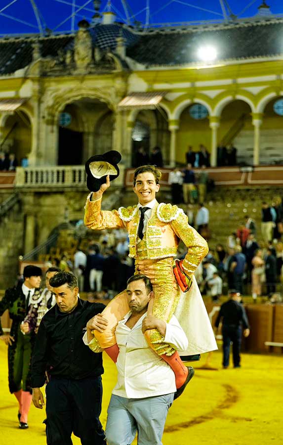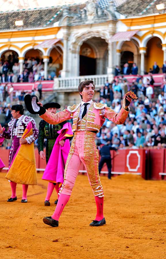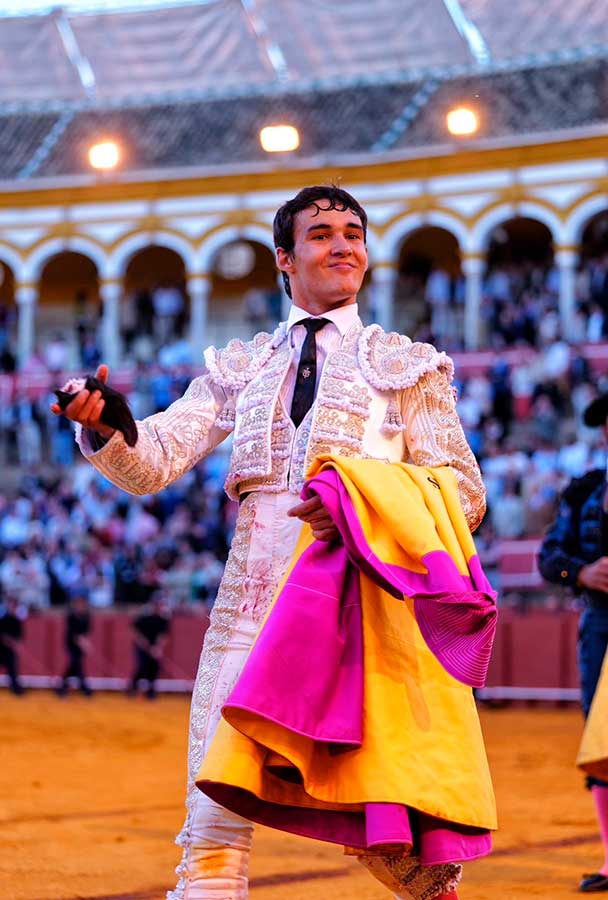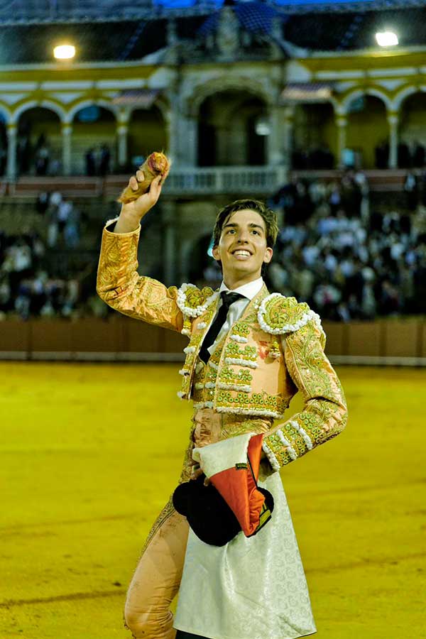 Manejó despacio el capote y midió al utrero en el tercio de varas. De hinojos lo toreó con la diestra en unos inicios de faena vibrantes y poderosos, para llegar de inmediato al público con muletazos profundos y ligados con la mano derecha. Después, de forma rotunda, fue trazando el toreo al natural, acompasado y de manera sutil e inteligente aunque con una pizca de holgura en el ajuste. Faena valiosa por su enorme valor y ansias de triunfo. Acabó con muletazos diestros, los mejores, para finalizar de estocada. La oreja fue justo premio.