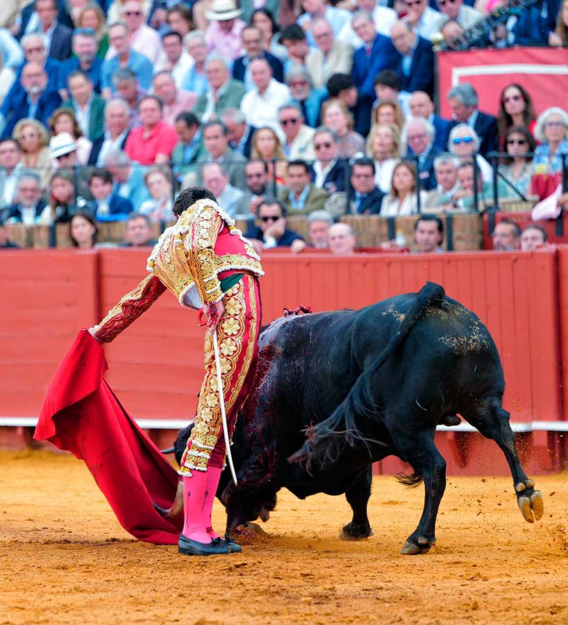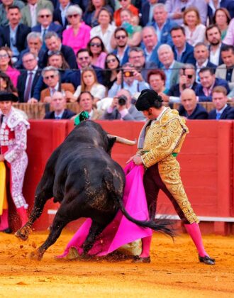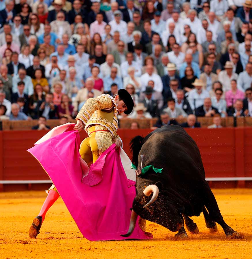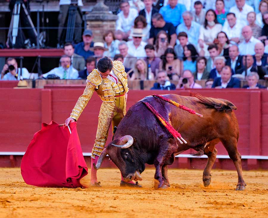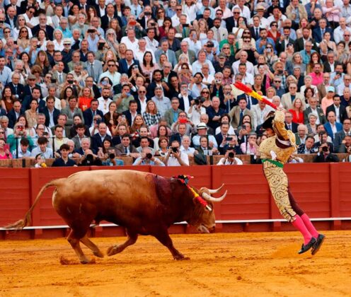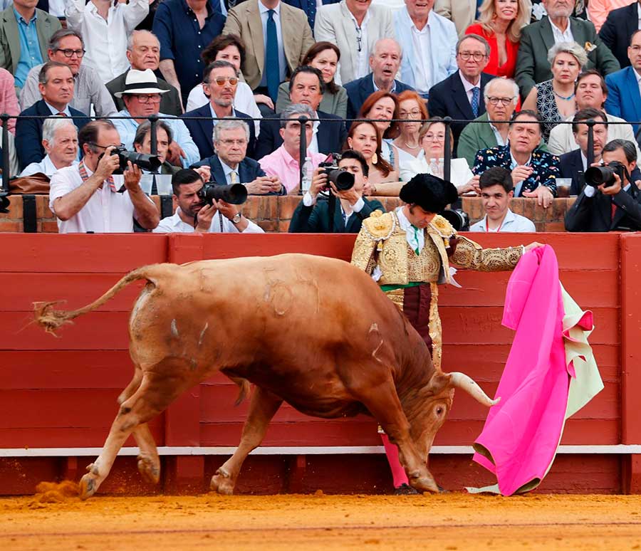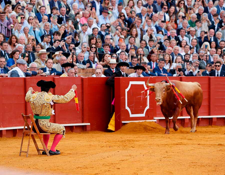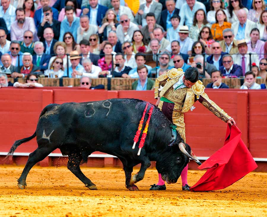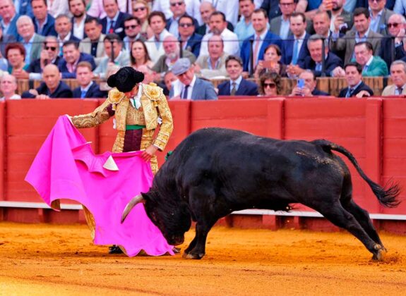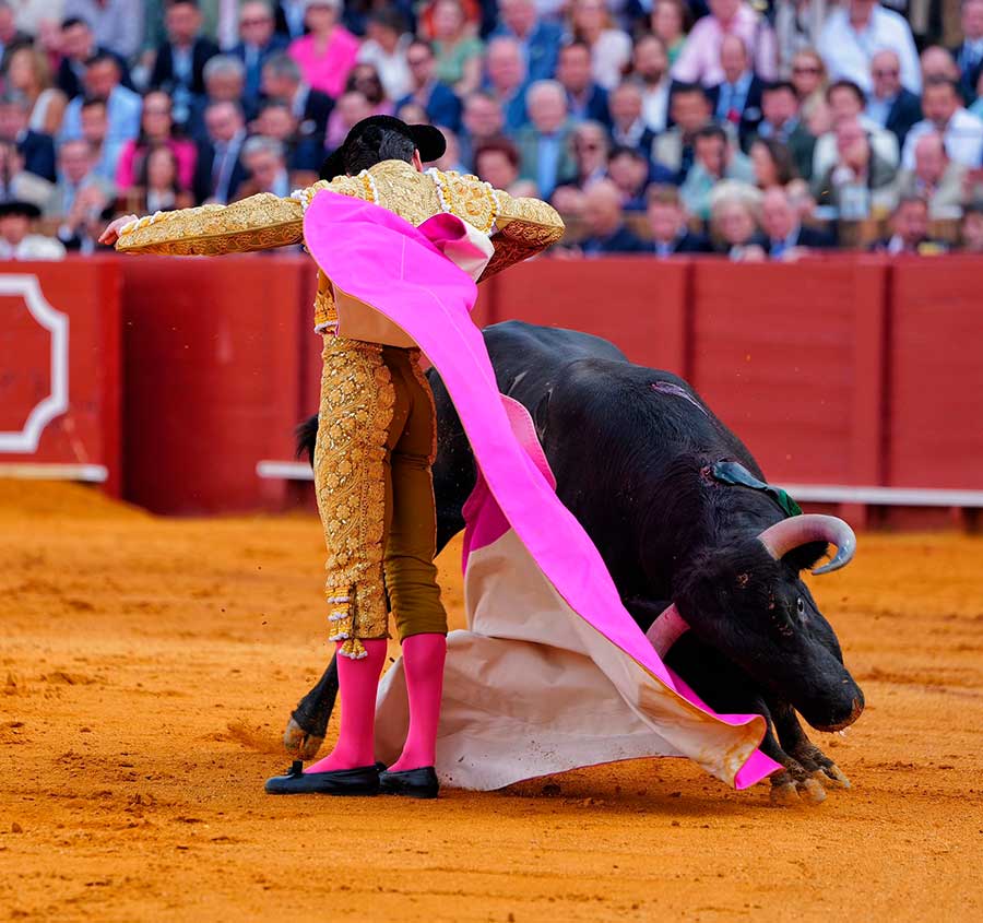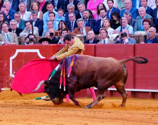 Siguió sentado en la silla para iniciar la faena con ayudados por alto y, en ese momento, Rafael ‘El Gallo’ se encendió un puro en el cielo. El toro pasaba quitándole astillas a la silla. En una de las embestidas con Morante ya en pie, el toro se llevó la silla por delante y Morante creó otra estampa de ‘La Lidia’ en un desplante torero. Se lo llevó a los medios y allí empezó a desgranar su tauromaquia (la mejor y más amplia de los últimos 30 años), enroscándose el toro a la cintura y pasándoselo por donde no parece que pueda pasar. Se cambió la muleta de mano y le pegó un natural que dio dos vueltas. Continuó por la misma mano con naturales que no es que acabaran en la cadera, es que no acababan. Todo lo que yo pueda contar humildemente es nada para lo que se vivió en la plaza. Por desgracia, necesitó de varios pinchazos y otros tantos descabellos para tumbar al toro, que se llevó el merecido rabo puesto. Pero, ¿qué es un apéndice peludo comparado con lo que se ha visto hoy en la Maestranza? Dio dos vueltas al ruedo clamorosas y podía haber dado las que hubiera querido. Morante es punto y aparte y necesita un tomo del Cossío para él sólo. Y lo más grande: todo lo que hizo, lo hizo sin toro.