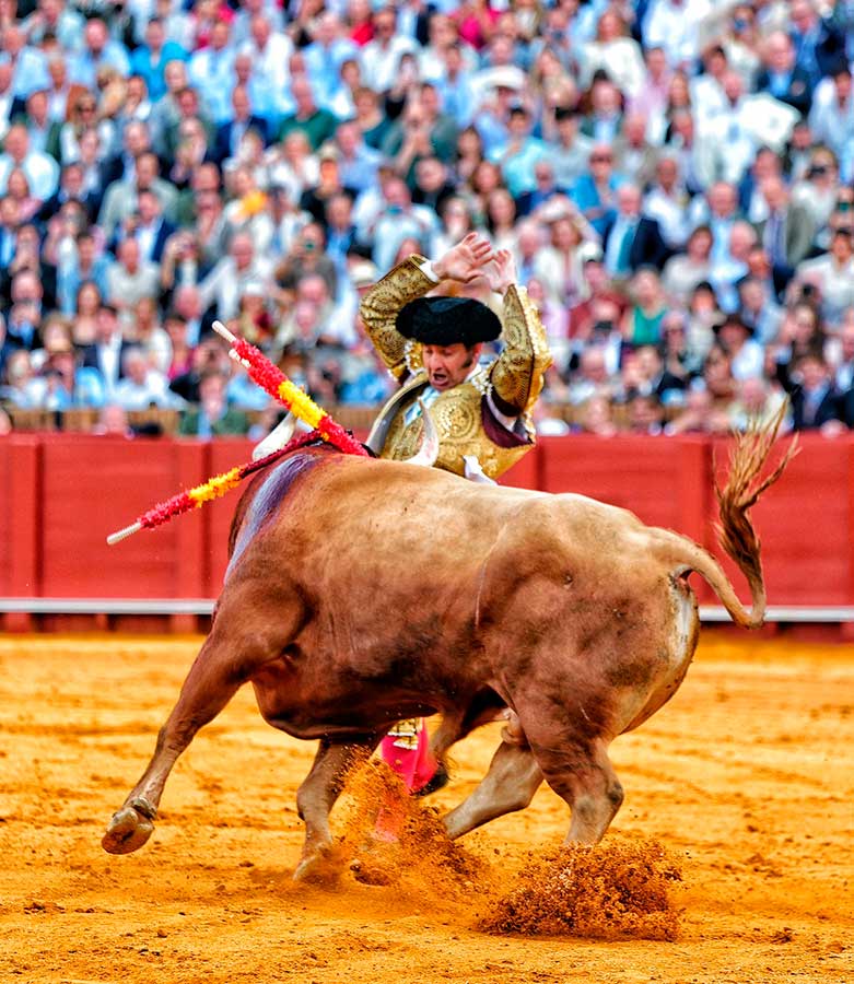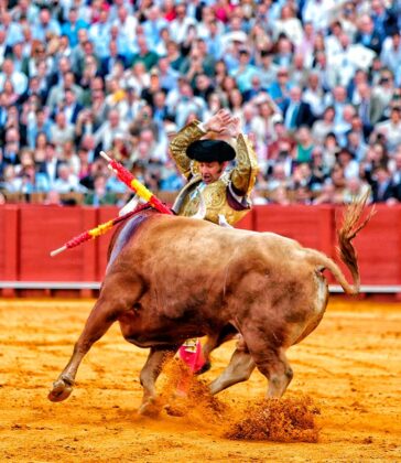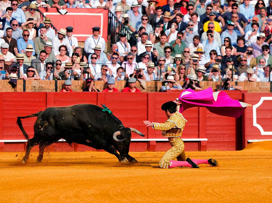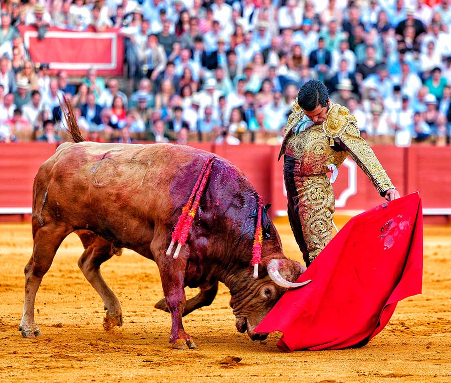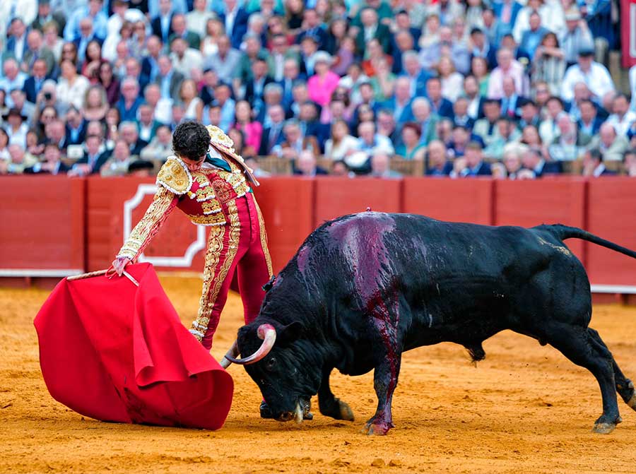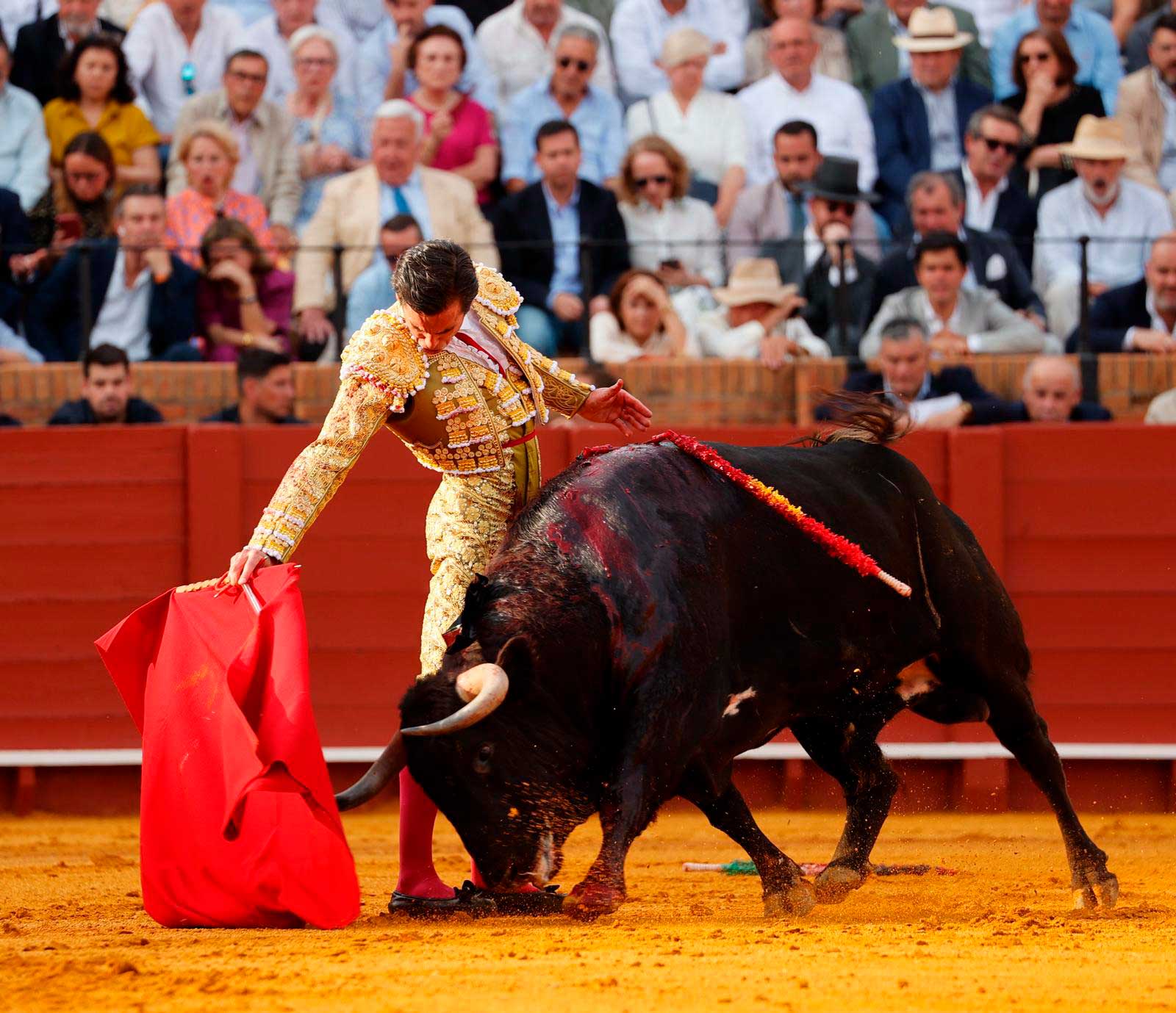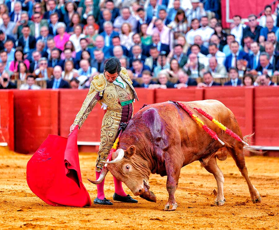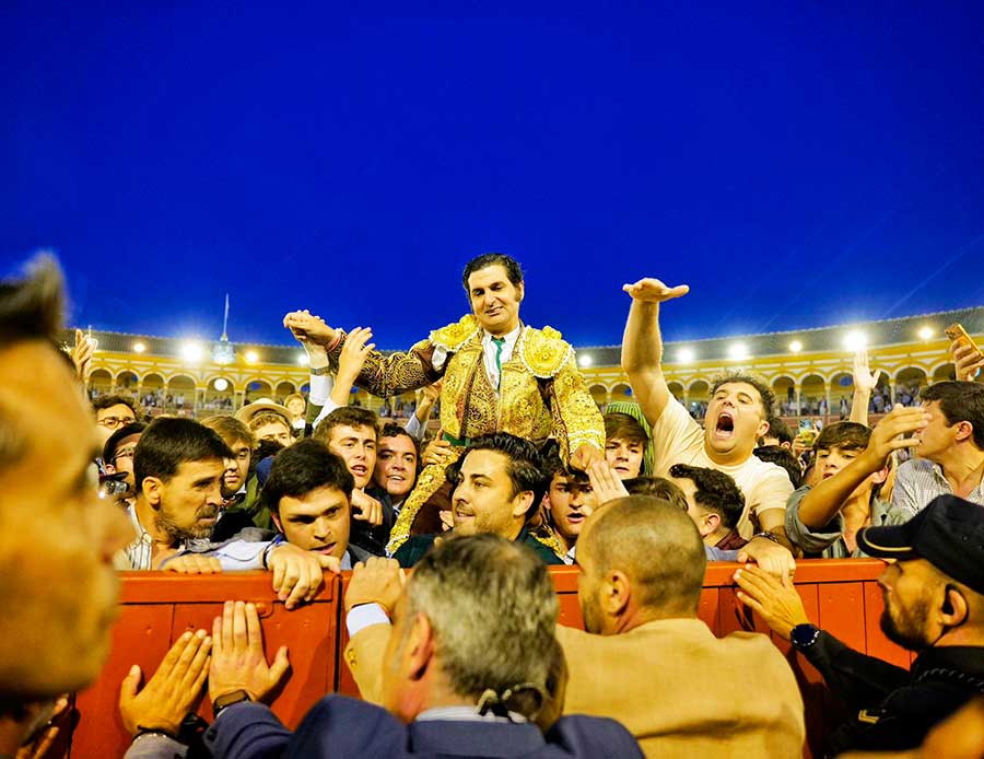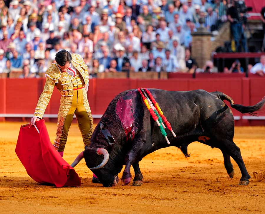 Siguió sentado en la silla para iniciar la faena con ayudados por alto y, en ese momento, Rafael ‘El Gallo’ se encendió un puro en el cielo. El toro pasaba quitándole astillas a la silla. En una de las embestidas con Morante ya en pie, el toro se llevó la silla por delante y Morante creó otra estampa de ‘La Lidia’ en un desplante torero. Se lo llevó a los medios y allí empezó a desgranar su tauromaquia (la mejor y más amplia de los últimos 30 años), enroscándose el toro a la cintura y pasándoselo por donde no parece que pueda pasar. Se cambió la muleta de mano y le pegó un natural que dio dos vueltas. Continuó por la misma mano con naturales que no es que acabaran en la cadera, es que no acababan. Todo lo que yo pueda contar humildemente es nada para lo que se vivió en la plaza. Por desgracia, necesitó de varios pinchazos y otros tantos descabellos para tumbar al toro, que se llevó el merecido rabo puesto. Pero, ¿qué es un apéndice peludo comparado con lo que se ha visto hoy en la Maestranza? Dio dos vueltas al ruedo clamorosas y podía haber dado las que hubiera querido. Morante es punto y aparte y necesita un tomo del Cossío para él sólo. Y lo más grande: todo lo que hizo, lo hizo sin toro.