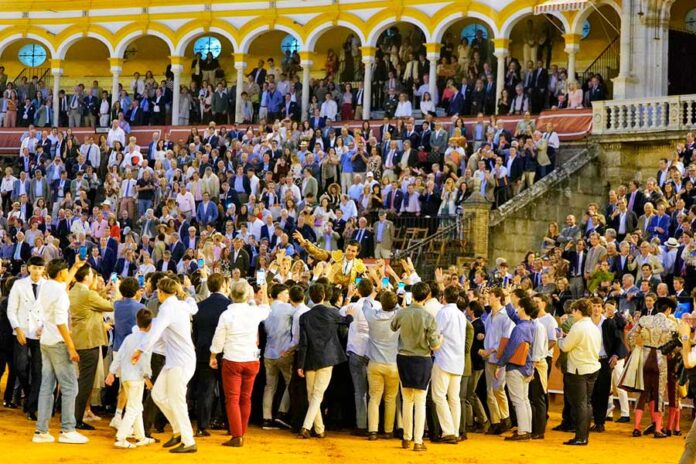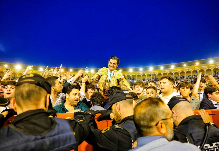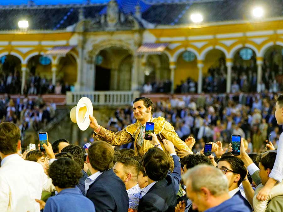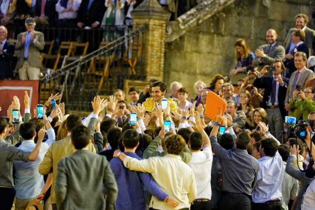 Lo que ha hecho Morante de la Puebla esta tarde en la plaza de toros de la Maestranza de Sevilla no está al alcance de nadie, ni lo va a estar nunca. Empiezo por el final de la corrida, sin cortar una sola oreja una muchedumbre de jóvenes se lanza al ruedo para sacar a su ídolo a hombros después de una tarde memorable, irrepetible y todos los adjetivos grandilocuentes que quieran ustedes añadir. Morante no sólo resucita suertes antiguas, siguiendo la línea tanto de Gallito como de su hermano Rafael, sino que interpreta el toreo ‘moderno’ como no está al alcance de nadie. Hoy ha dado un natural lento, reposado, templado, enroscándose al toro 360º y después lo ha rematado como nadie podía esperar, y ha toreado a la verónica como sólo él puede hacerlo, tan bien y tan ‘arrebatao’ que sonó la música. Después puso dos pares de banderillas de forma clásica como ha visto en los videos a su inspiración Gallito, y no contento con eso pidió una silla, se sentó, cruzó las piernas como vemos en las láminas antiguas, y puso el tercer par en un emocionante quiebro con el público ya en pie. Sentado en la misma silla empezó la faena. Antes quite por tijerinas, recibo con varios pases con el capote a una mano pegado a tablas -pegado a tablas, insisto-, un repertorio histórico para trasladarnos a otros tiempos.