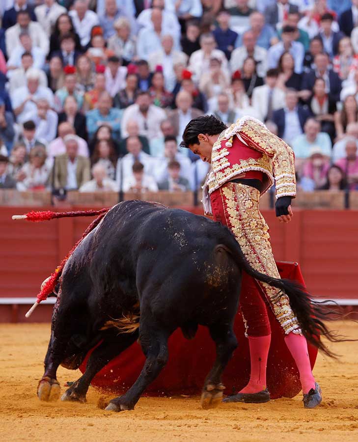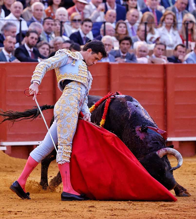 El cuarto tenía recorrido, tenía hasta cierta clase en su embestida, pero Manzanares encontró hoy un aliado en el viento para justificar su incomodidad y una faena deslabazada, sin sentido de unidad, que de nuevo volvió a aburrir a todos. Qué pena de toro, un buen toro. Y qué pena que el puesto de Manzanares, más la corrida que le queda, no la aprovecharan toreros con proyección. El empresario José María Garzón sigue la estela del anterior, Ramón Valencia, y mantiene protegido al más que amortizado Manzanares (dos corridas en Feria, más una tercera en septiembre; ¡qué barbaridad!). Lo mejor, la estocada, pero no se libró de dos de esos silencios de Sevilla que duelen. Algunos dirán que el de Alicante no ha tenido suerte ni con el sorteo ni con el viento; yo le digo que los que no han tenido suerte han sido sus dos toros.