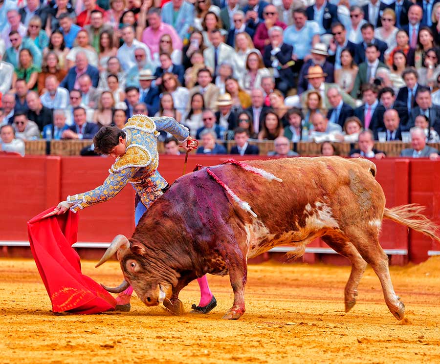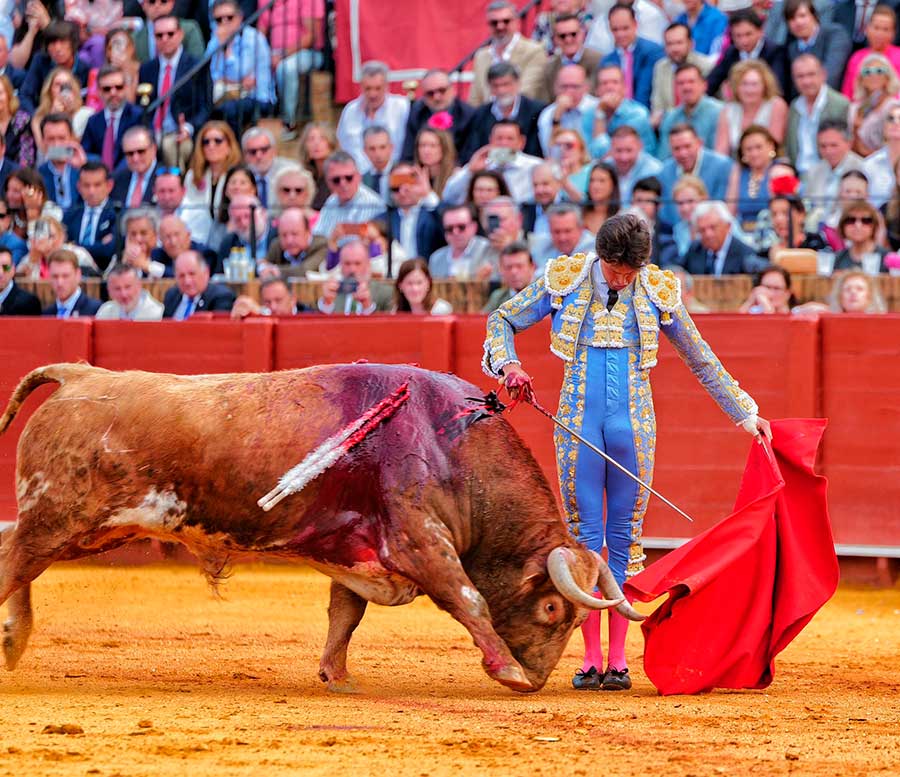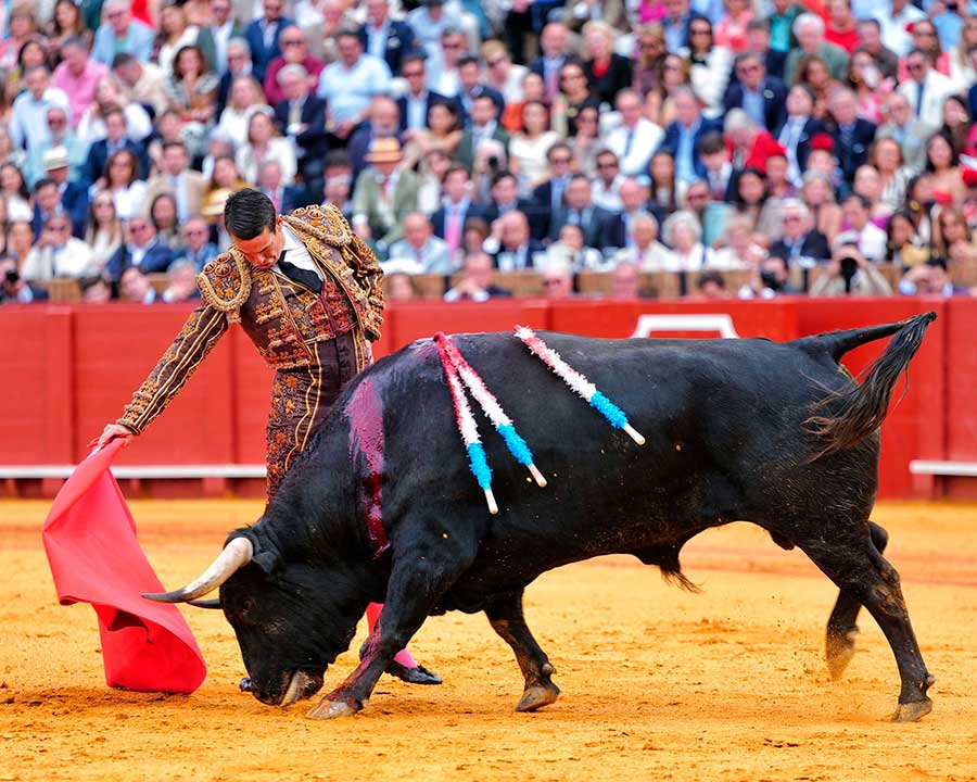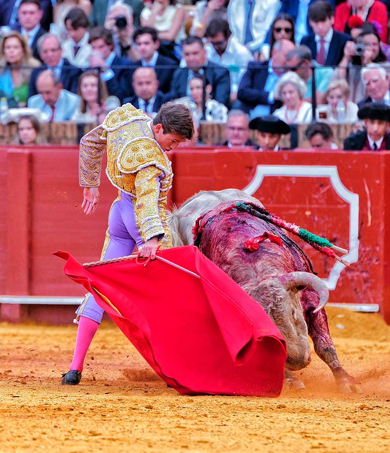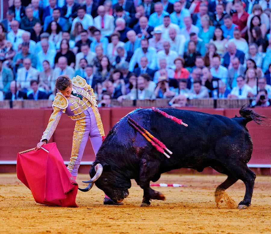 Transcurría la tarde entre silencios. Silencios que no son de desidia. Silencios que son sentencias a la nada ocurrido en el ruedo. Silencios, a veces, majestuosos, espaciosos, definitivos, con los que Sevilla define las anodinas tardes de toros. Hoy, el silencio, se convirtió en el grito desgarrador ante la trágica cogida, convirtiéndose de inmediato en el clamor del triunfo. Todo un vuelco para una tarde que caminaba zigzagueante por los vericuetos de la complicada mansedumbre. Sin embargo, apareció por la puerta de chiqueros el quinto toro, marcado con el hierro de Toros de Cortés, con el que Andrés Roca Rey cumplió su objetivo: cortarles las orejas.