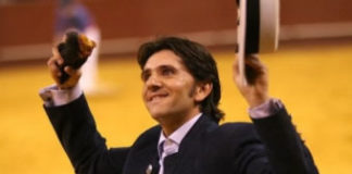 Morante de la Puebla, ganadero e impulsor del novedoso proyecto, a hombros tras la novillada en la que fue ganadero celebrada en su pueblo y acompañado por los cinco noveles locales. (FOTO: Marta Verdugo)