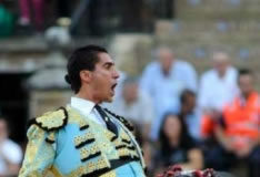 Morante de la Puebla, ganadero e impulsor del novedoso proyecto, a hombros tras la novillada en la que fue ganadero celebrada en su pueblo y acompañado por los cinco noveles locales. (FOTO: Marta Verdugo)