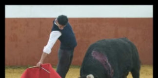 Morante de la Puebla, ganadero e impulsor del novedoso proyecto, a hombros tras la novillada en la que fue ganadero celebrada en su pueblo y acompañado por los cinco noveles locales. (FOTO: Marta Verdugo)