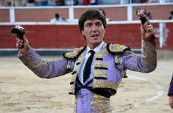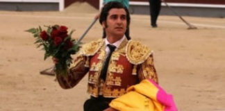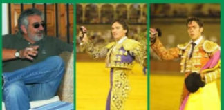 Morante de la Puebla, ganadero e impulsor del novedoso proyecto, a hombros tras la novillada en la que fue ganadero celebrada en su pueblo y acompañado por los cinco noveles locales. (FOTO: Marta Verdugo)