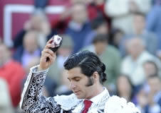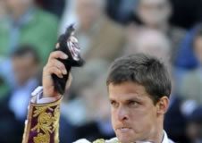 Morante de la Puebla, ganadero e impulsor del novedoso proyecto, a hombros tras la novillada en la que fue ganadero celebrada en su pueblo y acompañado por los cinco noveles locales. (FOTO: Marta Verdugo)