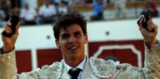 Morante de la Puebla, ganadero e impulsor del novedoso proyecto, a hombros tras la novillada en la que fue ganadero celebrada en su pueblo y acompañado por los cinco noveles locales. (FOTO: Marta Verdugo)