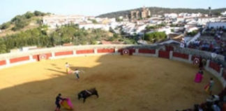 Morante de la Puebla, ganadero e impulsor del novedoso proyecto, a hombros tras la novillada en la que fue ganadero celebrada en su pueblo y acompañado por los cinco noveles locales. (FOTO: Marta Verdugo)