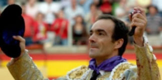 Morante de la Puebla, ganadero e impulsor del novedoso proyecto, a hombros tras la novillada en la que fue ganadero celebrada en su pueblo y acompañado por los cinco noveles locales. (FOTO: Marta Verdugo)