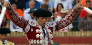 Morante de la Puebla, ganadero e impulsor del novedoso proyecto, a hombros tras la novillada en la que fue ganadero celebrada en su pueblo y acompañado por los cinco noveles locales. (FOTO: Marta Verdugo)