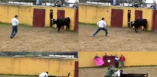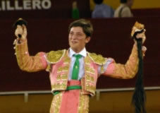 Morante de la Puebla, ganadero e impulsor del novedoso proyecto, a hombros tras la novillada en la que fue ganadero celebrada en su pueblo y acompañado por los cinco noveles locales. (FOTO: Marta Verdugo)