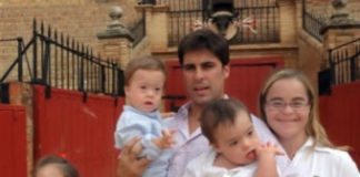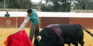 Morante de la Puebla, ganadero e impulsor del novedoso proyecto, a hombros tras la novillada en la que fue ganadero celebrada en su pueblo y acompañado por los cinco noveles locales. (FOTO: Marta Verdugo)