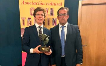 Morante de la Puebla, ganadero e impulsor del novedoso proyecto, a hombros tras la novillada en la que fue ganadero celebrada en su pueblo y acompañado por los cinco noveles locales. (FOTO: Marta Verdugo)