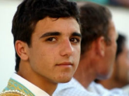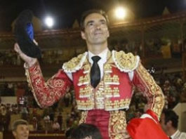 Morante de la Puebla, ganadero e impulsor del novedoso proyecto, a hombros tras la novillada en la que fue ganadero celebrada en su pueblo y acompañado por los cinco noveles locales. (FOTO: Marta Verdugo)